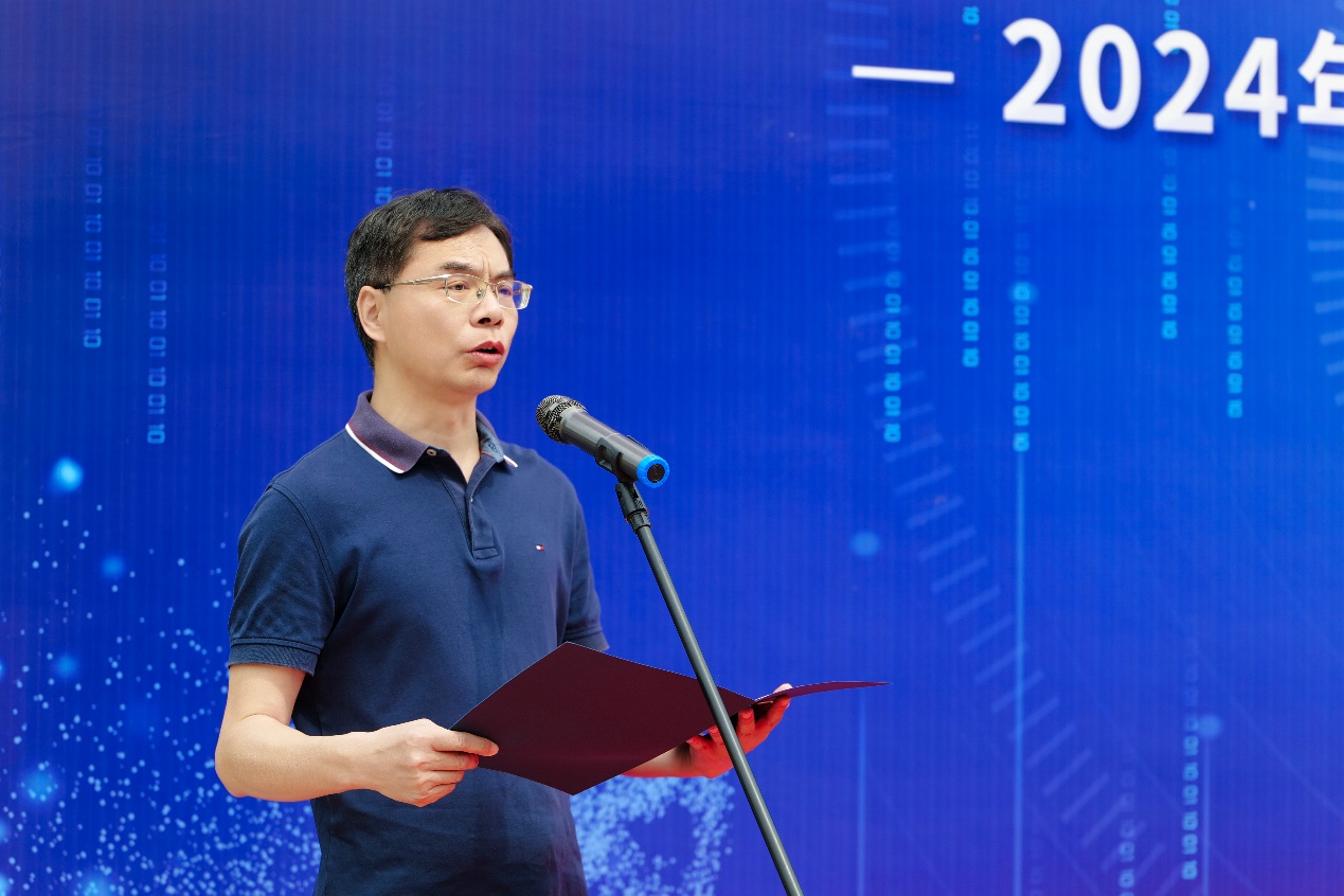 学生工作部(处)部长商守卫和365官网院长田浩共同为2024年科技文化节形象公仔揭幕。学生代表张紫藤分享了参与科技文化节的感受与心得。