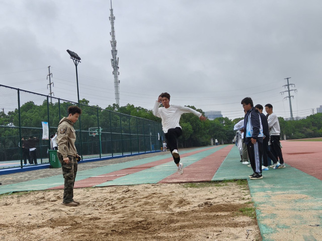 图为跳远预选赛现场