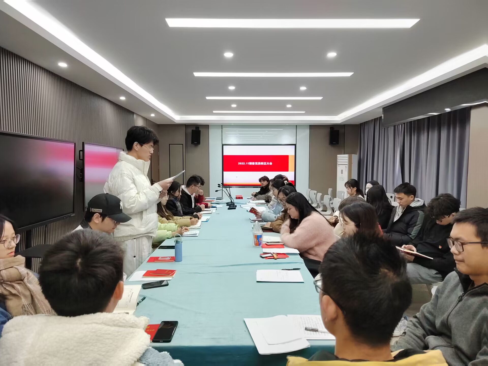 学生第一党支部预备党员转正大会现场