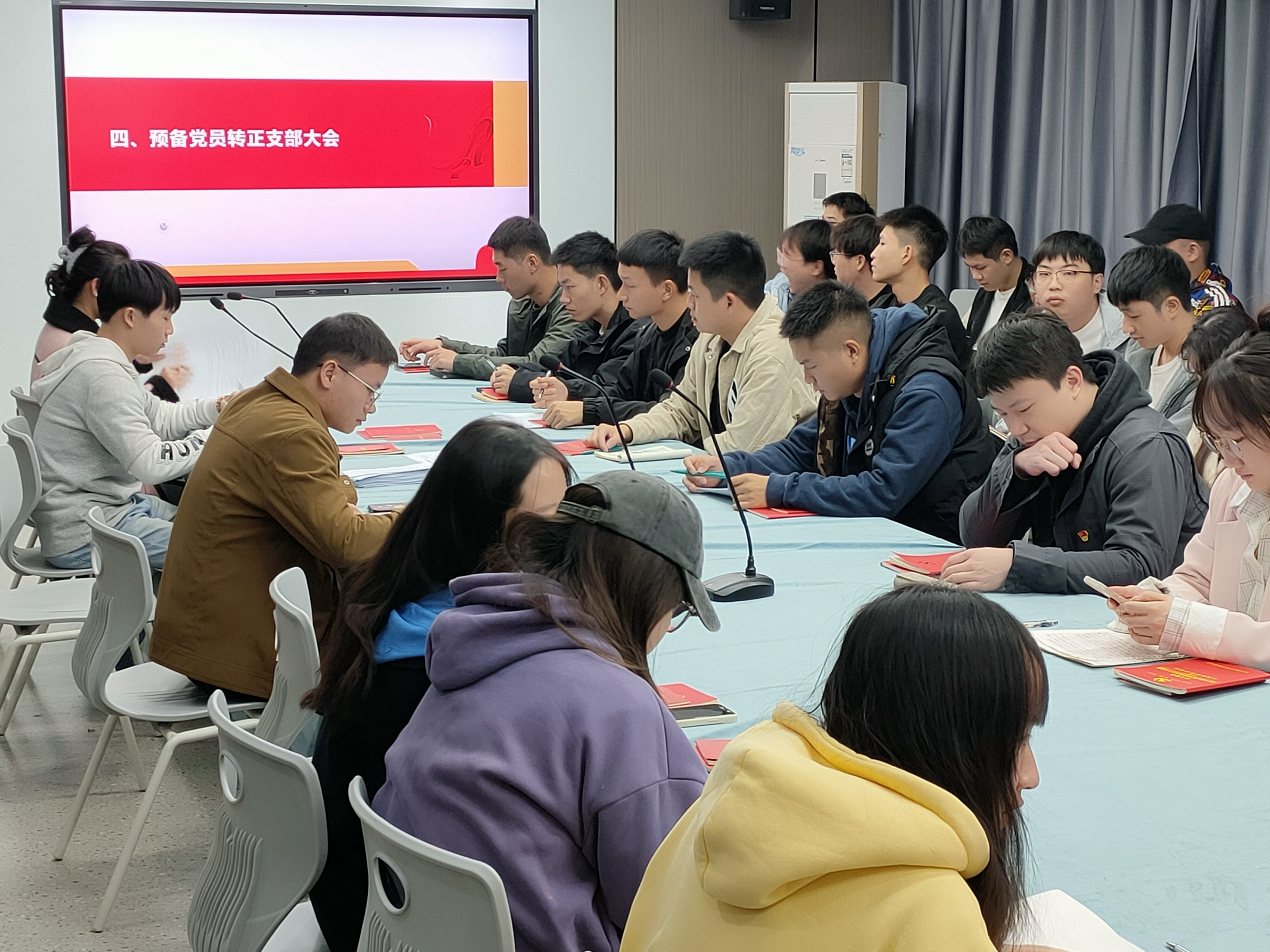 学生第四党支部预备党员转正大会现场