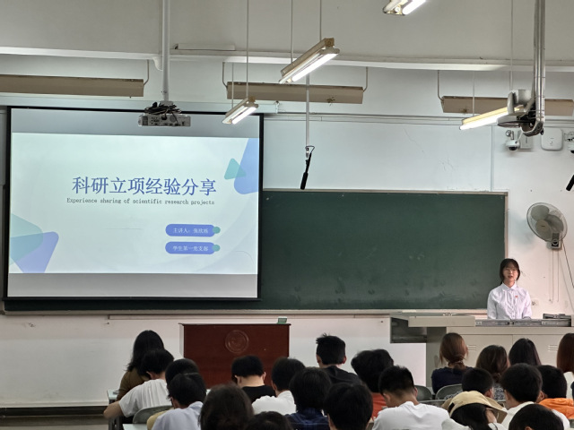 本网讯(通讯员:陈俐全)为充分发挥学生党员的先锋模范作用,将学生党员的教育培养与朋辈引领相结合,不断创新基层党组织活动形式。2024年3月31日,学生第一党支部党员张欣栎在J1-303为软件工程2023级新生班级开展科研立项分享交流。